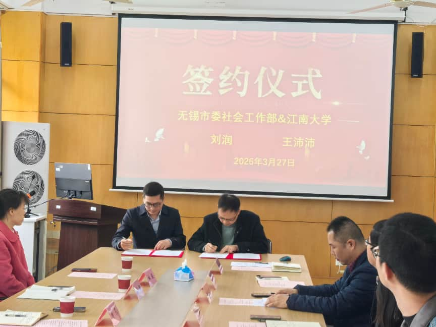 3月27日上午,无锡市社会工作人才培养基地合作协议暨揭牌仪式在江南大学法学院A316会议室举行。此次基地成立是江南大学法学院深化校地合作、推进社会工作专业产教融合的重要里程碑,为学院专业建设、人才培养与地方社会治理需求精准对接搭建了全新平台,助力无锡社工人才队伍建设迈向新台阶。无锡市委社会工作部副部长费菲,社工人才和志愿服务处处长刘润、二级主任科员龚竹林,新吴区社会工作协会副会长兼秘书长彭颖,无锡市乐助公益发展中心总干事林歌,无锡市明康社会工作服务中心主任贡渊媛等实务界代表出席仪式。江南大学法学院院长王君柏教授,党委副书记顾云艳,院长助理汪连杰,社会学系支部书记王沛沛、系主任汪冬冬、实习督导主任章程,以及王金元、曹菲等教师代表共同参加了本次活动。