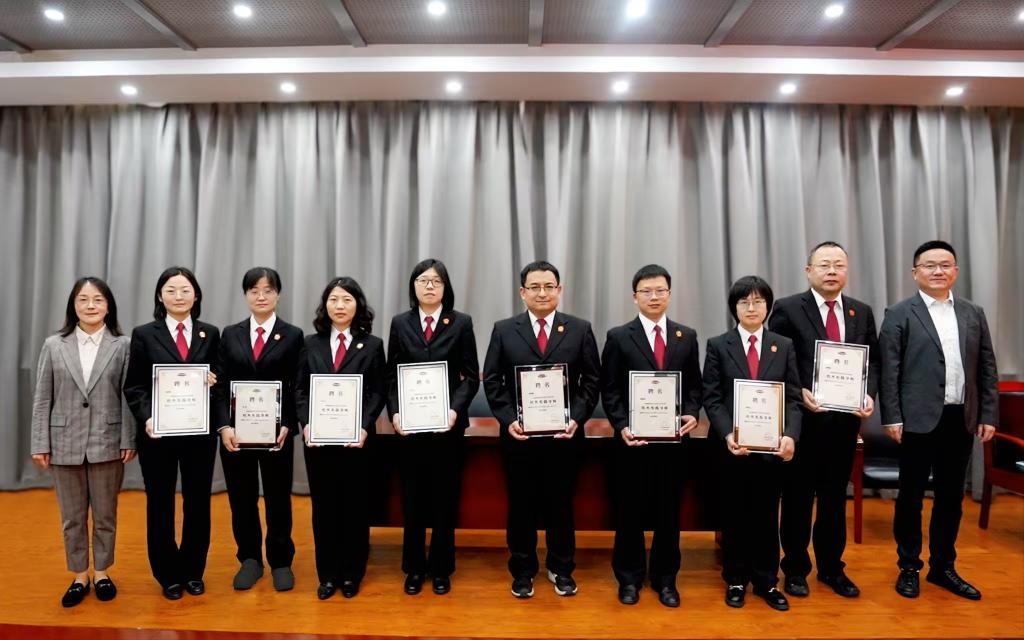 上午,双方在锡山法院十楼会议室举行学术交流会,会议由潘洪峰主持。首先,沈君介绍法院在案件审理、信息调研及队伍建设方面的基本情况与经验做法;陆秦围绕学科建设、人才培养、学术研究等详细阐述学院的发展历程与办学特色。接着,双方围绕法律实务与理论交叉研究前沿问题展开深入交流。随后,陆秦、顾云艳为锡山法院8名资深法官颁发“校外实践导师”聘书。