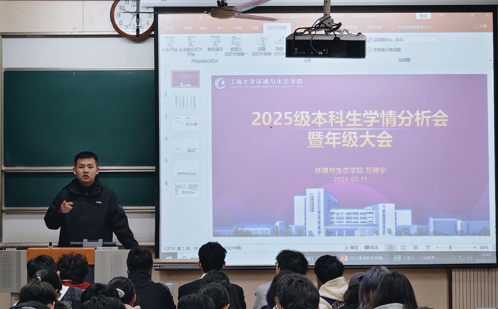 3月11日晚,环境与生态学院在一教A518召开2025级本科生学情分析会暨年级大会。会议聚焦学风建设与学涯成长,旨在助力学生健康成长与全面发展。