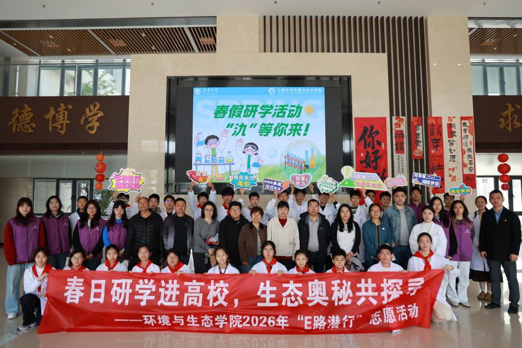 春光明媚,研学正当时。2026年春假期间,江南大学环境与生态学院充分依托环境生态领域的专业特色与学科优势,精心打造形式多样、内容丰富的生态科普实践课堂。4月1日至2日,学院相继迎来宜兴中小学生研学团,以“理论宣讲+动手实验”的沉浸式体验形式,为不同学段青少年解锁生态环保奥秘,让绿色理念在春日里生根发芽。此次活动既推动高校优质教育资源走出校园、服务社会,也切实彰显了学院的社会服务职能与育人担当。