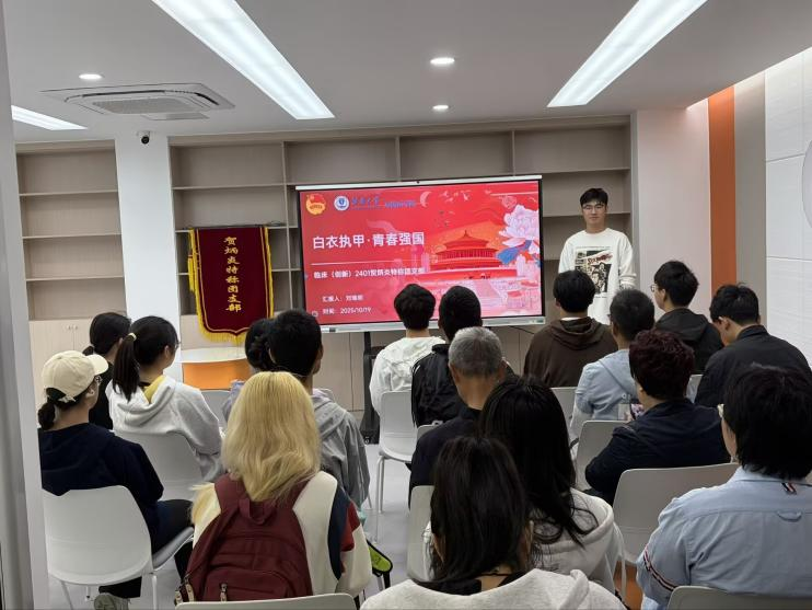 随后,支部开展“红色医学史”专题学习会,临床(创新)2401班长李凌淳系统梳理了“红医精神”形成和发展的历史脉络,深刻阐释了其“政治坚定、技术优良、无私奉献、救死扶伤”的核心内涵。