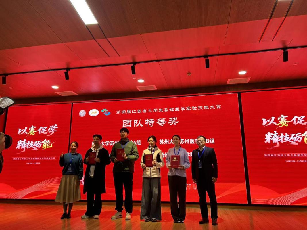 近日,第四届江苏省大学生基础医学实验技能大赛在苏州大学圆满落幕。经过激烈角逐,由无锡医学院实验教学中心选派的两支本科生代表队,在众多强劲对手中脱颖而出,最终斩获团队特等奖与团队一等奖各一项,创下参赛以来的最佳战绩。队员于天悦获评“优秀参赛选手”,指导老师蔡维维、陈俊良荣获“优秀指导教师”称号。