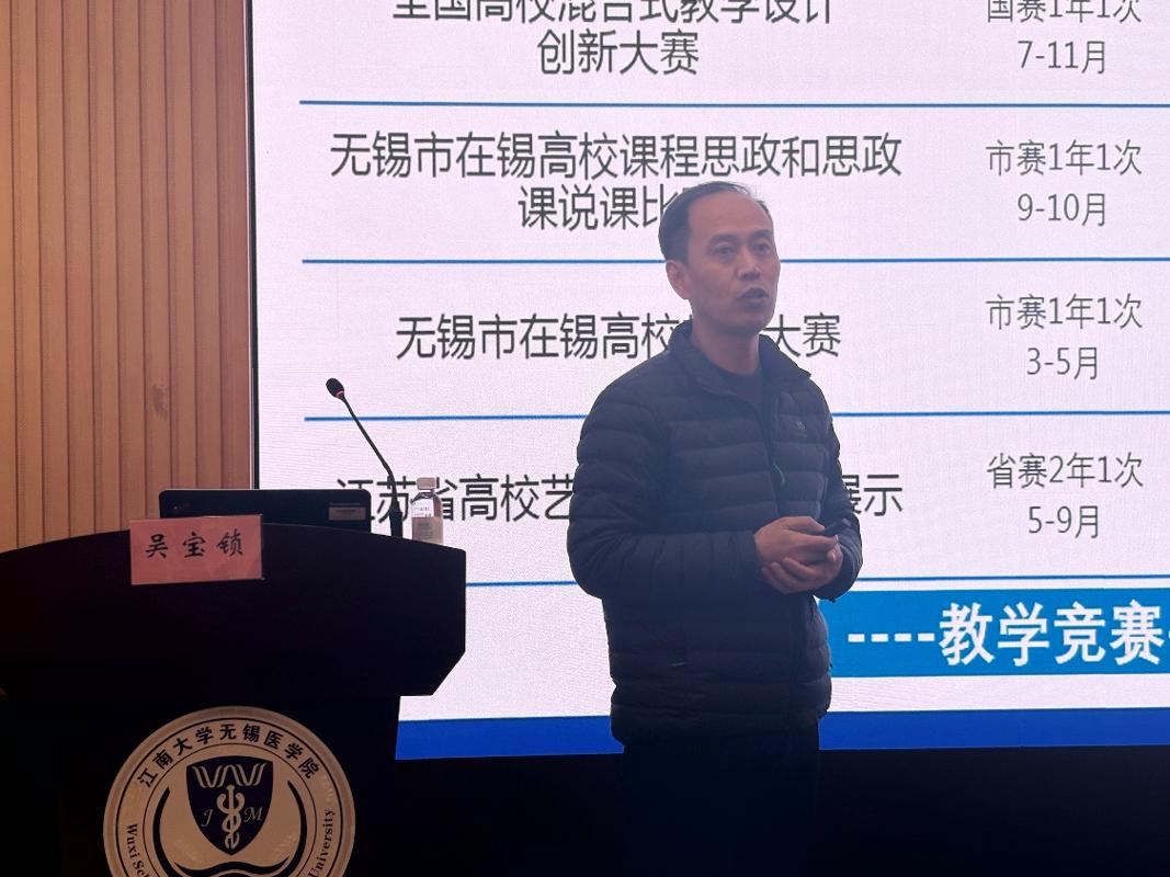 在教学规范培训环节,庞庆丰全面解读了学校与医学院最新教学管理要求。庞教授特别强调,教学规范是教学质量的生命线。他结合《江南大学本科教学事故认定与处理办法》详细说明了课堂教学、考试管理、成绩评定、实践教学等环节的具体要求与红线标准,同时介绍了学校正在推进的智慧阅卷系统应用和教学档案电子化归档等新政策。