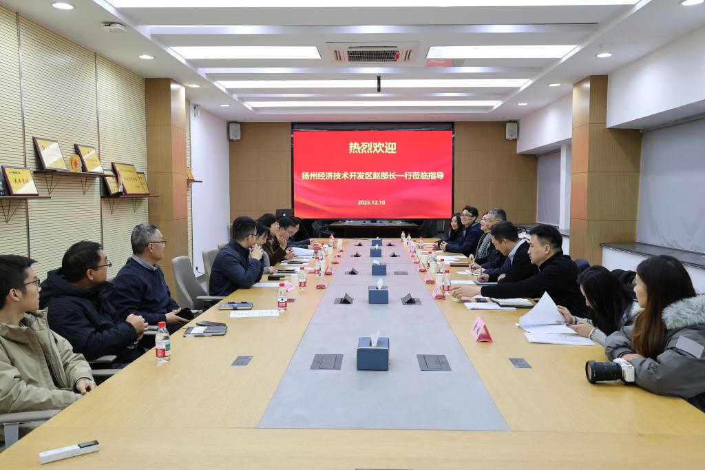 12月10日下午,扬州经开区党工委委员、组织部部长赵苏扬,科技镇长团团长傅怀梁率区相关部门负责人及企业代表到访交流。纺织科学与工程学院班子成员、相关团队负责人、科技镇长团挂职教师翟胜利等一起参会。学院党委书记张菁燕首先对赵苏扬一行的到来表示热烈欢迎。她指出,本次交流是校地双方深化合作、共谋发展的重要契机,期待通过此次活动进一步推动人才共育、技术共享与产业共创。