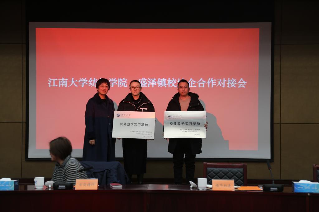 学院党委书记张菁燕为企业颁发“江南大学实习基地”牌匾