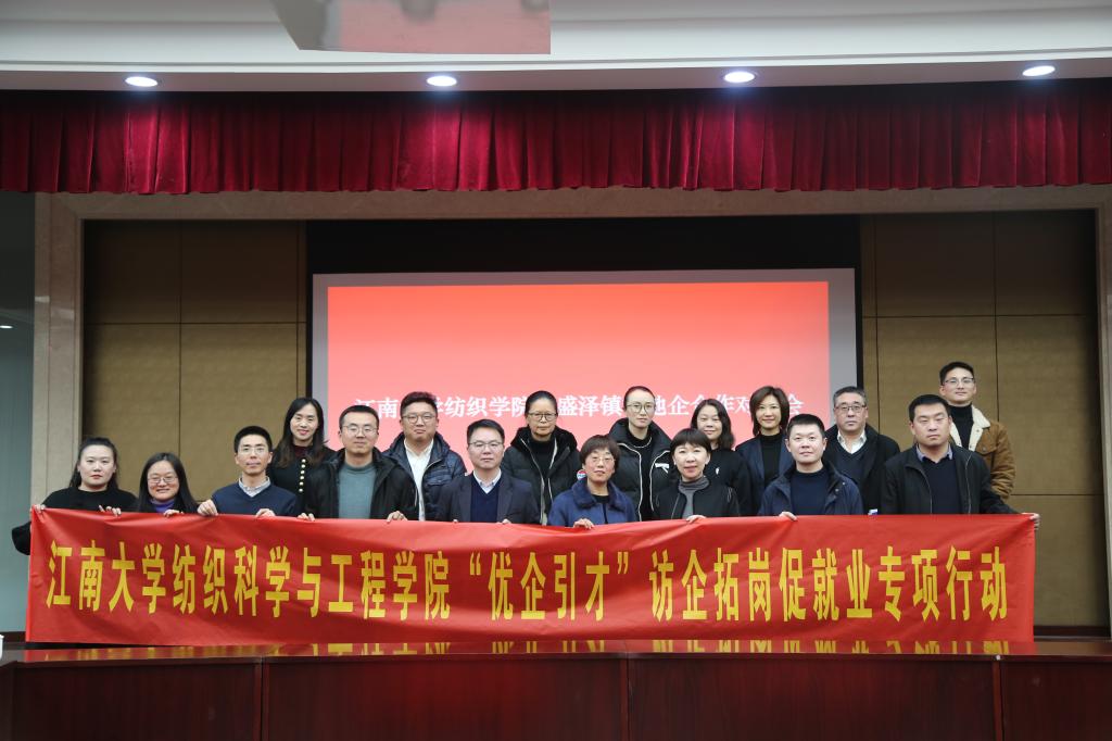 1月23日,纺织科学与工程学院党委书记张菁燕、院长马丕波率队赴盛泽镇开展校地企合作对接暨“优企引才”访企拓岗促就业活动。学院党委副书记兼副院长王恒、院长助理戴磊、纺织工程系副主任王清清等参加活动。盛泽镇党委副书记汝文英热情接待了学院一行。