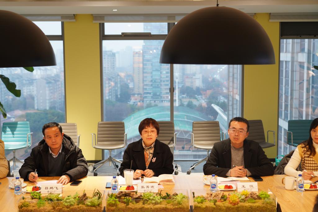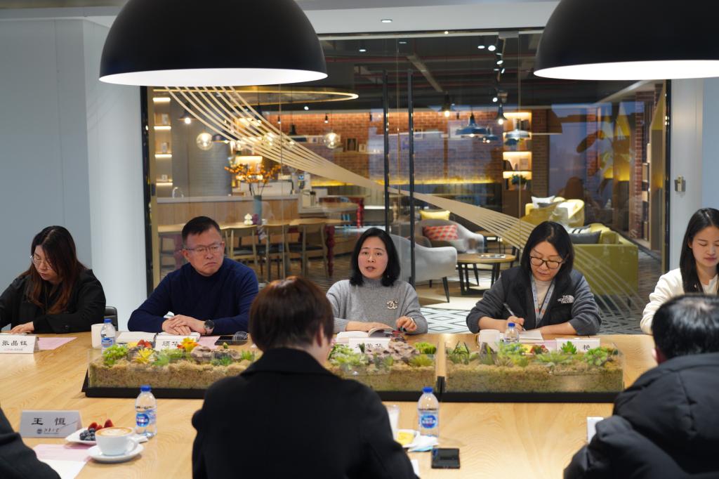 随后座谈会上,国泰华盛人力资源部主任助理胡恺雯介绍,目前国泰华盛已吸纳60余名江南大学毕业生,其中纺织学科背景占比约占三分之一,并活跃在业务、面料等核心岗位上,成为企业发展的重要支撑力量。随后,朱荣华代表华盛公司对学院领导、老师的到访表示热烈欢迎,她肯定了双方自2021年以来在人才培养等方面合作所取得的积极成效,同时也介绍了公司近年来的发展情况。她指出,公司在发展中也急需科技及人才支持,未来将更加注重与江南大学在产学研、人才培养等方面的深入合作。