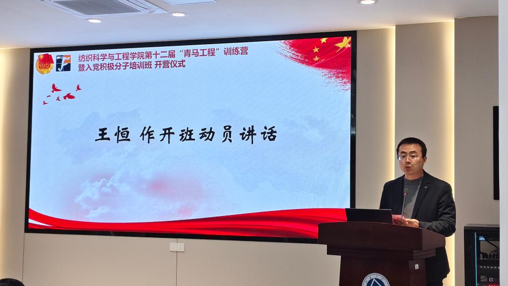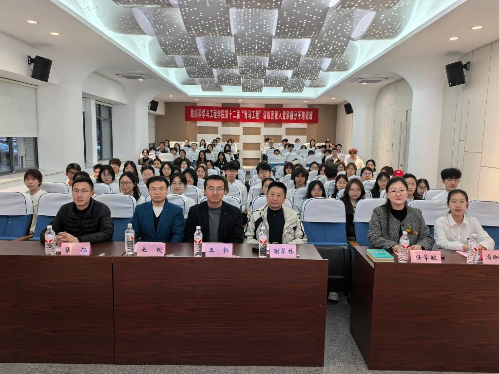 3月26日晚,纺织科学与工程学院于学院A103会议室举办第十二届青年马克思主义者培养工程训练营暨入党积极分子培训班开营仪式。学院党委副书记、副院长王恒,学院关工委常务副主任、特邀党建组织员谢翠林,马克思主义学院讲师毛钦,学院学工办主任兼分团委书记任学敏,2025级研究生辅导员张旭,学院学生会执行主席周珈宇出席仪式,训练营成员和入党积极分子共计100余人参与培训。活动由学院学生会团委通讯社唐新月主持。