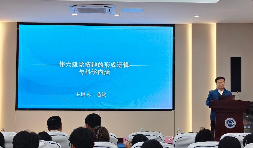 毛钦以《伟大建党精神的形成逻辑与科学内涵》为题讲授专题课程。课程系统梳理了马克思主义在中国的早期传播脉络,深入阐释中国共产党成立的历史条件与时代背景,并结合中共一大召开的关键细节,全面解读了伟大建党精神的核心要义:坚持真理、坚守理想,践行初心、担当使命,不怕牺牲、英勇斗争,对党忠诚、不负人民。他勉励广大青年学子认真学习党史,感悟初心使命,不断增强认同感,立足专业所长,勇担时代重任,在强国建设、民族复兴的生动实践中贡献青春力量、展现青春担当。