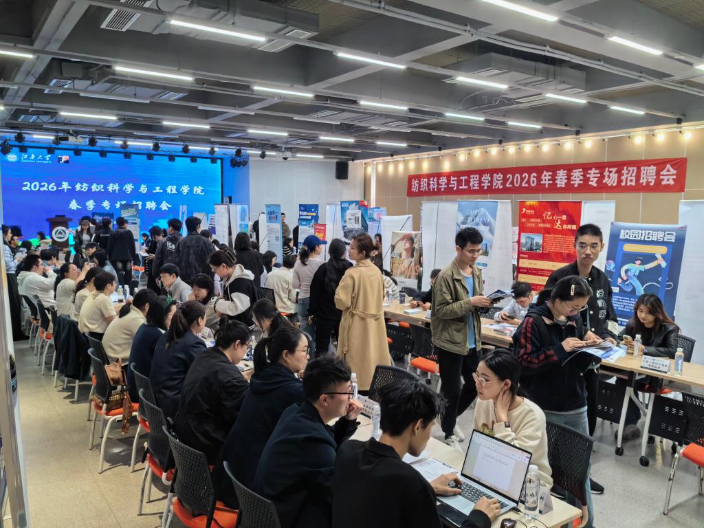 为深入贯彻党中央、国务院关于高校毕业生就业工作的决策部署,助力毕业生更高质量、更充分就业,搭建用人单位与毕业生精准对接平台,4月15日下午,纺织科学与工程学院2026届毕业生春季专场招聘会在北区大学生活动中心F105举行。