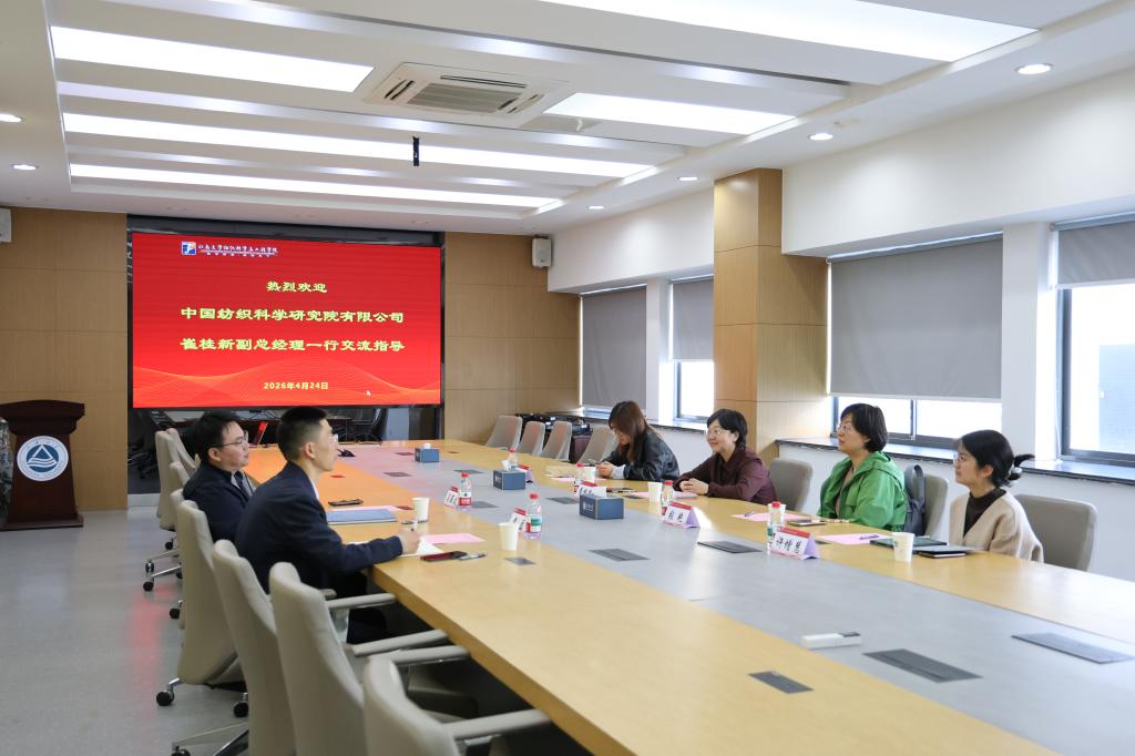 4月24日,中国纺织科学研究院有限公司(以下简称“中纺院”)副总经理崔桂新带队,科技创新部主任张艳、高纤复材所副所长李婷、中纺院(浙江)技术研究院有限公司副总经理(主持工作)许增慧一行,来纺织科学与工程学院开展指导交流。学院院长马丕波、副院长戴磊热情接待了来访嘉宾,双方围绕纺织学科建设、科技创新赋能及产学研深度融合等核心议题,展开了全面深入的座谈交流,凝聚合作共识,共促行业发展。