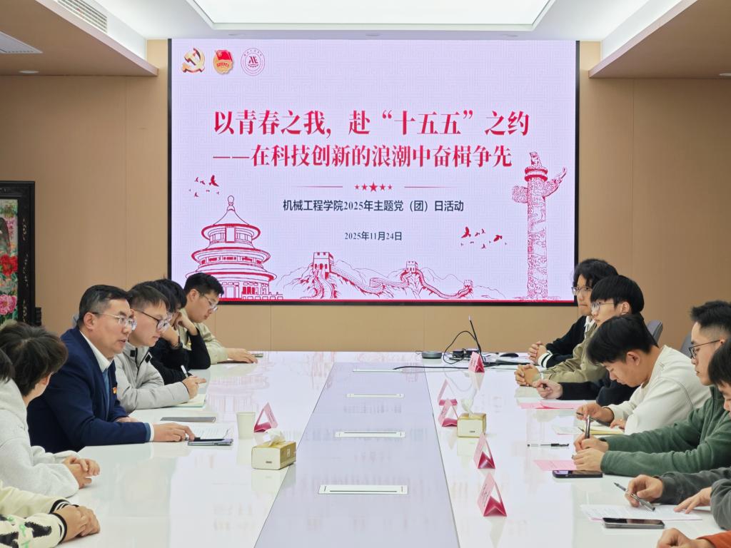 11月24日下午,机械工程学院举办“以青春之我,赴‘十五五’之约——在科技创新的浪潮中奋楫争先”主题党(团)日活动。江南大学党委常委、副校长刘龙,先进制造研究中心研究生第三党支部党员、机械2304团支部团员和青年共同参加活动,机械工程学院党委书记高雪梅、机械工程学院党委副书记、副院长刘升恒列席活动。