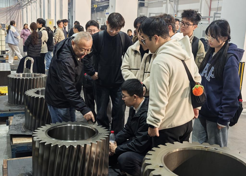 在恒温22摄氏度的智能化车间内,师生们实地观摩了齿轮制造全流程。车间内三分之一的设备为国产高端数控机床,充分展现了企业在推动核心技术自主化方面的战略布局。技术负责人现场演示了精密齿轮加工工艺,并详细解读了智能化生产线在提质增效、保障精度中的关键作用。研究生围绕齿轮传动系统的技术迭代、国产装备研发进展等与企业工程师深入交流;本科生则对生产工艺优化、职业能力需求等踊跃提问。企业负责人表示,未来将持续加大研发投入,以创新驱动引领齿轮制造领域的技术突破。