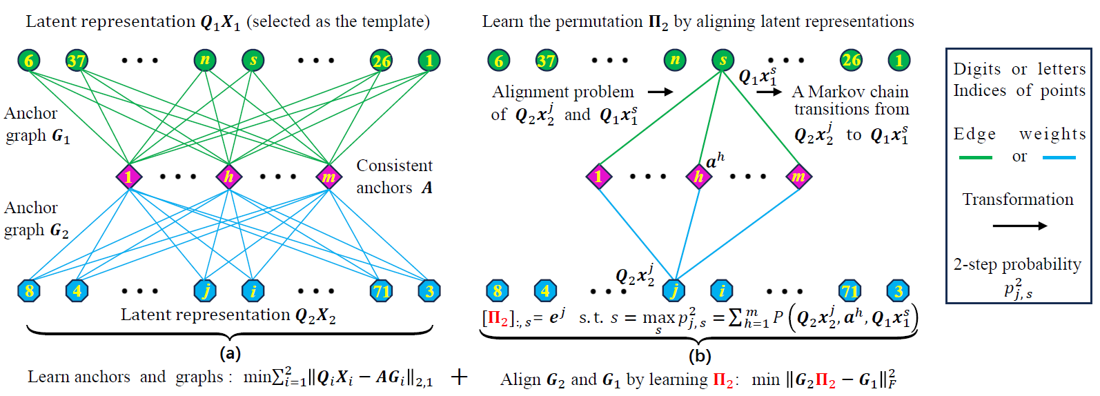 多视图聚类分析是人工智能的重要研究课题。在大多数现有的多视图建模场境中,源自不同视图的同一目标实例间的跨视图对应关系(如成对的图像-文本数据),是轻松获取一致表征的关键前提条件。然而,在实际应用场景里,这一前提往往难以成立,从而导致视图不对齐的问题。恢复未对齐的多视图数据是一项极具挑战性的任务。为应对这一现实挑战,该文提出了一种基于数据驱动的自适应模板选择机制,并将数据的对齐问题转化为马尔可夫链中的二步转移过程。基于这一思路,该文提出了基于自适应模板选择机制的概率化对齐的视图未对齐的聚类方法,将模板选择、数据对齐以及已对齐数据的聚类问题整合至一个统一框架之中,从而有效且高效地解决了视图未对齐的聚类问题。为促进人工智能领域的发展,论文的算法代码和数据均已开源,论文的链接如下:https://ieeexplore.ieee.org/abstract/document/11194914。
