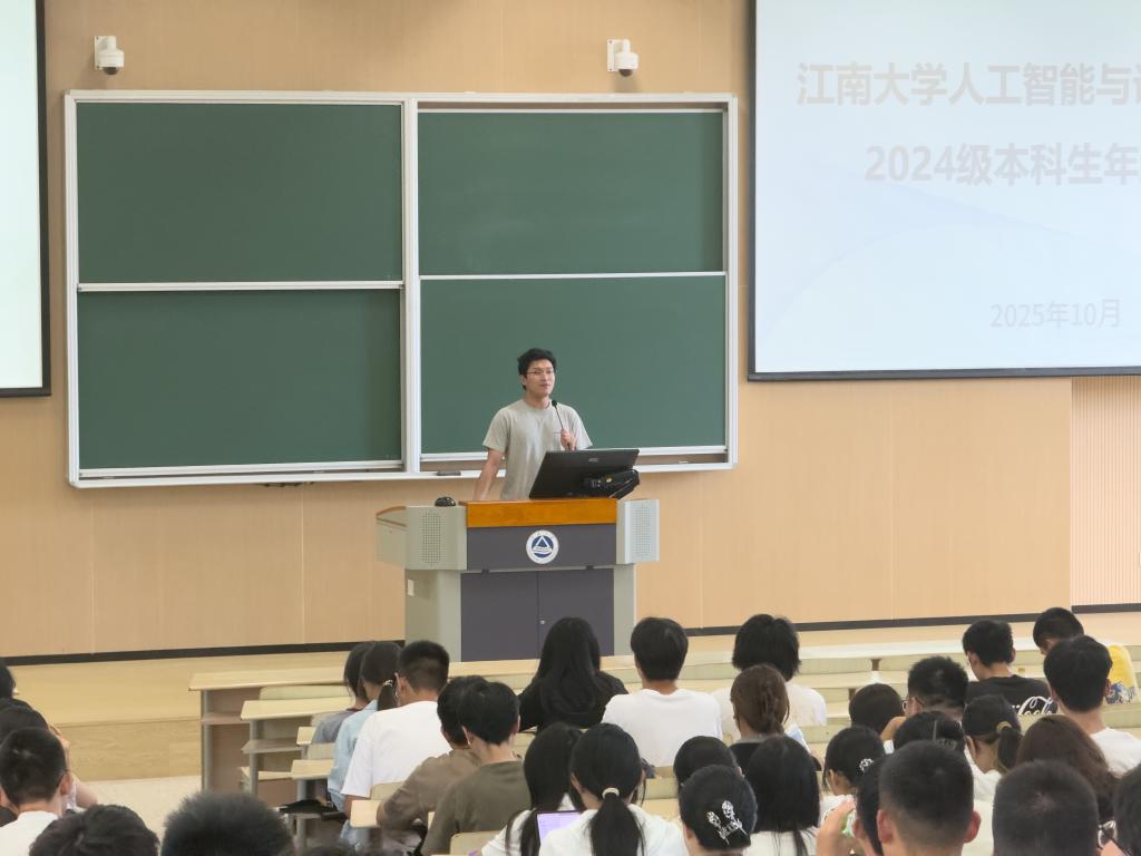 人工智能年级大会上,戴士焱对大一学年学情进行了分析,讲解同学们的绩点、学分完成及等级考试通过情况,详细说明学业预警条件与学籍处理政策。他鼓励学业困难的同学主动沟通,调整状态,积极应对问题。通过讲解国家就业政策、学校就业支持、学院保研政策及往届学生去向,他引导同学们思考个人职业与学业规划,强调就业与升学都需提前准备,脚踏实地,将目标落实到行动中。他还进行近期事务提醒,强调校园反诈的重要性,提醒同学们提高防范意识,避免受骗;说明评奖评优、本科生导师制等工作,明确时间节点与注意事项。