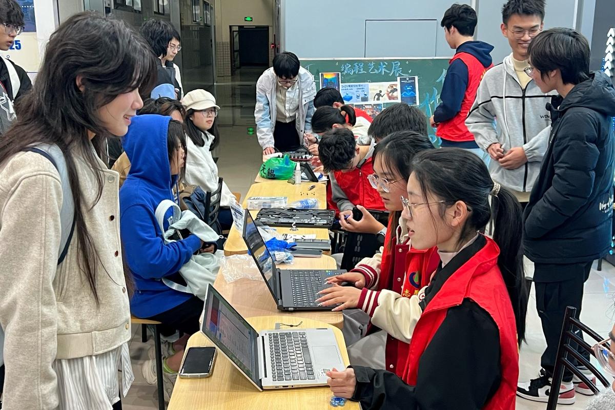 活动现场累计接待师生80余人次,志愿者们充分发挥专业优势,用饱满的热情为同学们讲解电脑软硬件维修维护知识,并提供了拆机除尘、C盘清理等服务。活动还设置了网络安全知识问答环节,内容涵盖网络健康维护、防范电信诈骗、人工智能知识科普等方面,引导广大学子树立正确的网络安全观念。