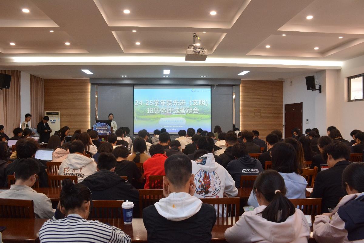 近日,人工智能与计算机学院2024-2025学年先进班集体评选答辩会在学院B310报告厅顺利举办。校学生工作处管理科正科级干部杨艳;学院党委副书记、副院长王莉莉,班主任代表、院长助理陈璟,院长助理、江苏省先进班集体班主任张欣,研究生辅导员张海月出席活动。活动由计科2502陈国宇主持。