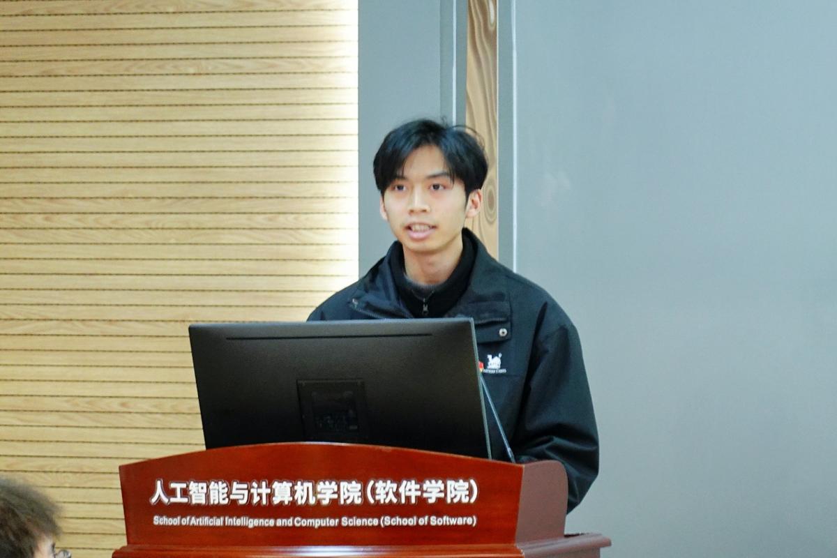 研究生第一党支部组织委员李民志汇报2025年支部工作情况。党支部书记张文杰以《学习贯彻党的二十届四中全会精神:聚焦“人工智能+”战略》为题讲主题党课,重点围绕未来五年国家在加快人工智能等数智技术创新,突破基础理论和核心技术等方面的部署,阐释了加快实现高水平科技自立自强的前进方向和实践路径,号召智能学子争做“原始创新”的攀登者、“科技强国”的建设者和“智能向善”的守护者,为国家科技创新接续奋斗。支部成员、2022级博士生程春阳以《我在江南读博的日子》为题分享其读博期间的科研生活经历和成长感悟。