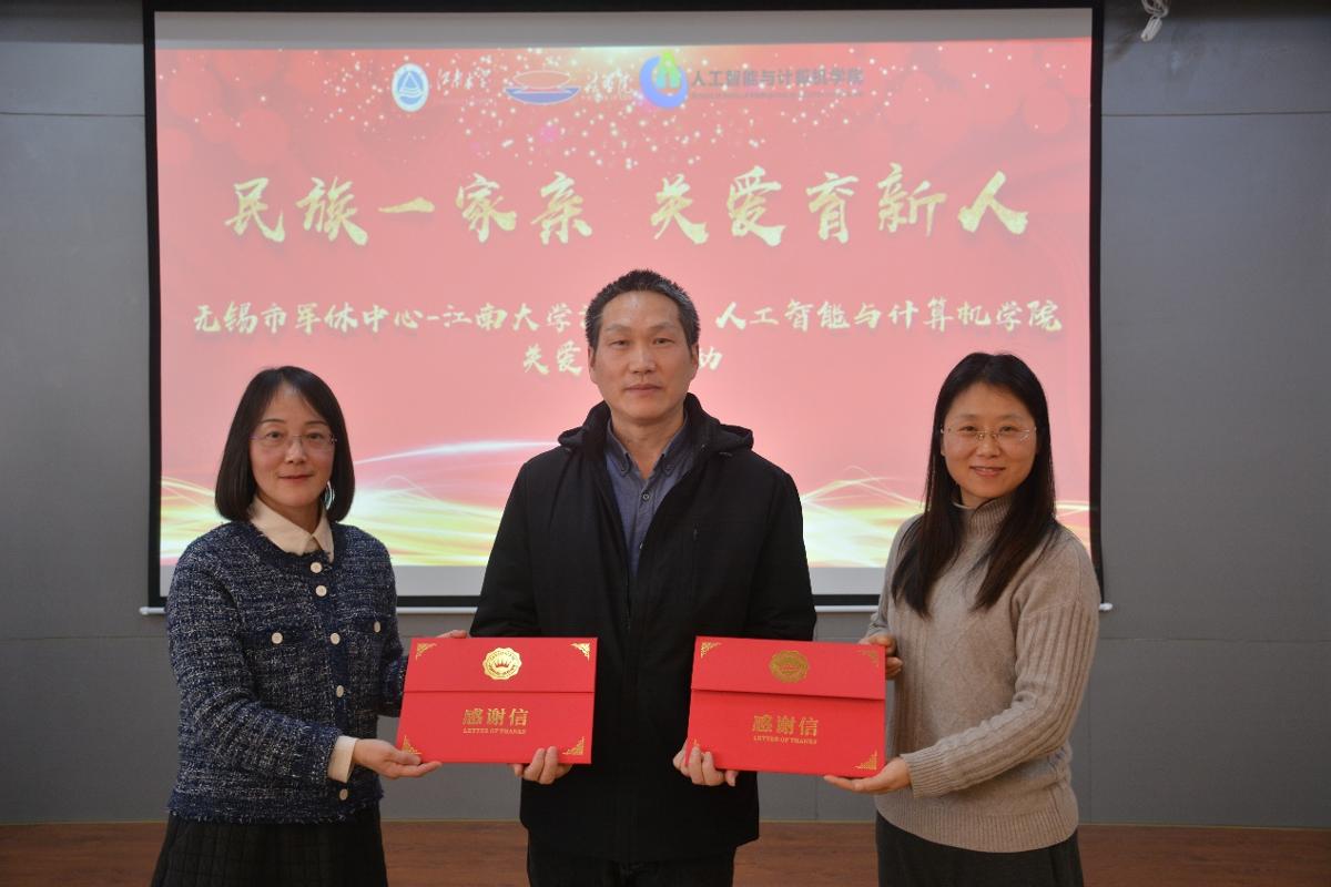 岁末暖冬聚温情,民族团结谱新篇。12月31日下午,人工智能与计算机学院 B310 活动室暖意融融,无锡市军休中心与江南大学人工智能与计算机学院、法学院联合举办的 “民族一家亲,关爱育新人”新春慰问活动在此圆满举行。无锡市军休中心党委委员、副主任黄正国,各服务站领导及军休干部代表,江南大学法学院党委副书记、副院长顾云艳,人工智能与计算机学院党委副书记、副院长王莉莉,两院辅导员及 36 名少数民族学生代表齐聚一堂,共话军民情谊,共叙民族团结。