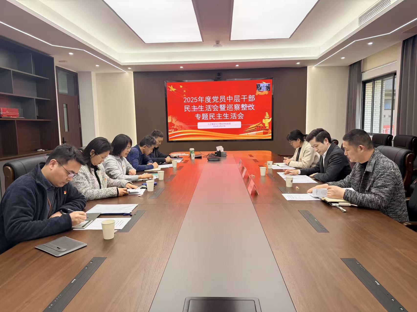 3月27日下午,人工智能与计算机学院党委在学院B318会议室召开2025年度民主生活会暨巡察整改专题民主生活会。学校党委常委、副校长、督导组组长马鑫,校纪委副书记、党委巡察办公室主任张海峰,校党委组织部副部长田卫平到会督查指导。会议由学院党委书记李艳主持,学院全体领导班子成员参加。