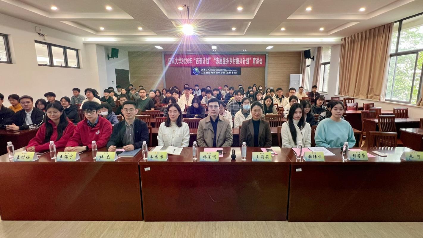 4月15日,江南大学2026年西部计划及乡村振兴计划宣讲报告会在人工智能与计算机学院B310报告厅举行。团新吴区委书记林星州、综合工作部副部长张玮怡,校团委副书记王园园,人工智能与计算机学院党委副书记王莉莉、学院学工办副主任杜磊、2025年乡村振兴计划志愿者胡馨蕾出席活动,学院毕业班辅导员、2026届毕业生等参会。活动由人工智能与计算机学院毕业班辅导员米宁主持。