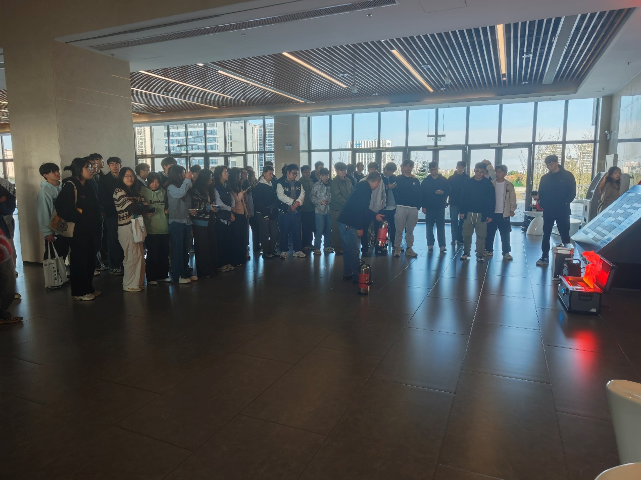 消防灭火技能实操演练环节,刘保红老师在知行楼外指定空地现场演示了模拟灭火器的正确使用方法、火灾初期扑救要点及疏散逃生技巧。在指导老师的有序组织下,全体新生分组进行实操训练,亲身参与灭火演练,熟练掌握“提、拔、握、压” 的灭火操作要领,切实提升了应对初期火灾的实战能力。