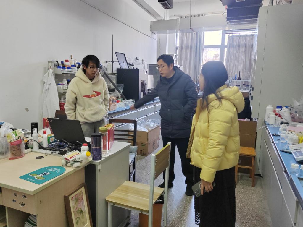 新春将至,暖意渐浓。为严格落实学校寒假期间安全教育工作部署,营造温馨祥和的节日氛围,切实传递对寒假留校学生的关怀与温暖,2月9日上午,化学与材料工程学院在蠡湖校区和东氿校区同步开展“寒冬日暖励研途,笃行不怠向未来”留校学生慰问活动。学院党委副书记兼副院长董霞、副院长马丕明,深入留校学生实验室走访慰问,与留校学子面对面交流,为大家送上真挚关怀与新春祝福。