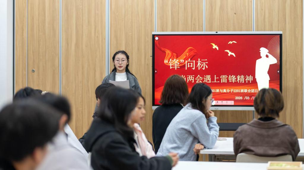 为深入学习贯彻全国两会精神,大力弘扬新时代雷锋精神,搭建团支部交流共建桥梁,近日,化学与材料工程学院高分子2201雷锋特称团支部结对化工2501班开展“‘锋’向标——当两会遇上雷锋精神”主题团日活动。活动以精神传承、朋辈引领、实践践行为核心,让高年级学长学姐与低年级新生面对面交流、心贴心互动,在轻松热烈的氛围中共同学习全国两会精神、感悟雷锋精神内涵,让奉献精神与责任担当在青春接力中传递延续。