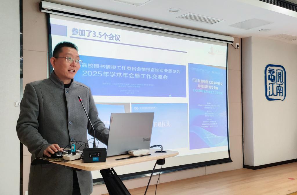 副馆长顾烨青传达江苏省高校图书情报委员会情报咨询专业委员会学术年会等会议精神