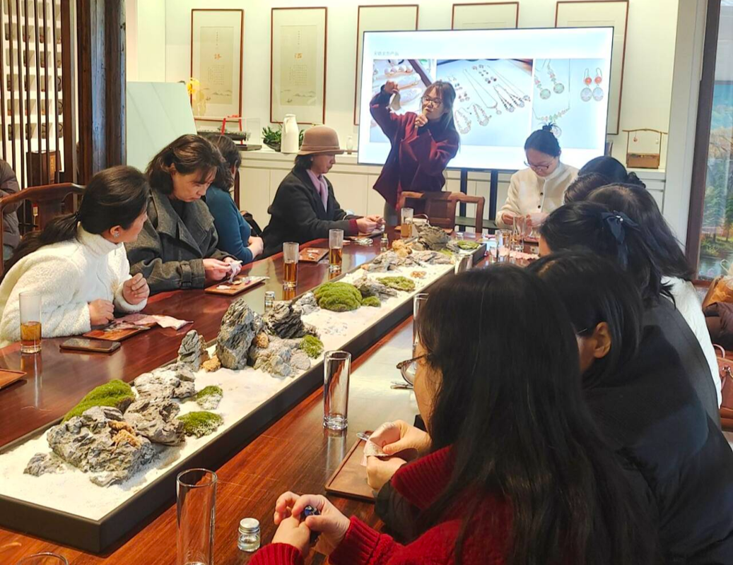 参与活动的女职工们兴致盎然,指尖穿梭于华美的锦缎之间,专注打磨每一处细节,相互交流心得、分享创意。在轻松雅致的氛围中,一件件精巧别致、寓意美好的宋锦文创作品相继诞生,大家在沉浸式手作中舒缓身心、陶冶情操,真切感受非遗文化的独特魅力,定格专属节日的美好时光。