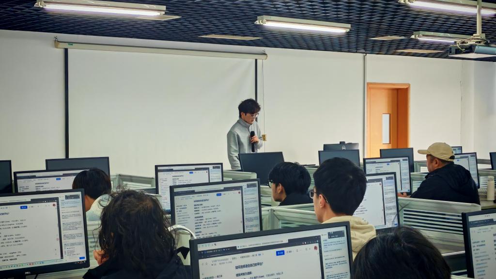 训练营共设五场主题讲座,分别围绕零基础复习提分、多场景AI工具选择、零代码搭建智能体、提示词工程以及大学生AI工具入门指南等方向展开,帮助师生从认知到实操逐步建立“先思考、后调用”的AI使用习惯,掌握与人工智能高效协作的实用方法。此次训练营启用了创新的主讲人招募模式,前三场讲座由在校同学担任主讲人,他们以专业的视角和鲜活的实践使用案例分享了智能体的应用心得;后两场讲座由图书馆学科服务部的郭玥老师和周灵稀老师主讲,两位老师认真准备、倾情分享了AI在工作和科研中的具体使用场景,与师生们进行了互动交流,让大家受益匪浅。