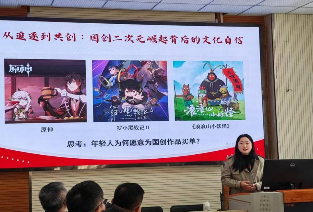 备课会上唐忠宝教授围绕“将《习近平谈治国理政》第五卷有机融入课堂教学”作专题交流。他结合典型教学案例,深入阐释如何引导学生从原著中感悟思想伟力、把握时代大势,夯实理论根基,增强思政课的思想性与理论深度,为与会教师提供了富有启发性的教学思路。张曦琳老师就第十章《建设社会主义文化强国》进行说课展示。她通过丰富案例、生动视频和启发性议题,将抽象理论与现实紧密结合,系统讲解文化自信的内涵与实践路径,呈现了一堂具有吸引力、感染力与说服力的思政课范本。新教师代表蔡天翊结合教学实践,分享了对讲授《概论》课的认识与体会,并表示将在今后教学中虚心向经验丰富的教师学习,潜心钻研,与学生共同成长,展现出思政课新生力量的活力与潜力。