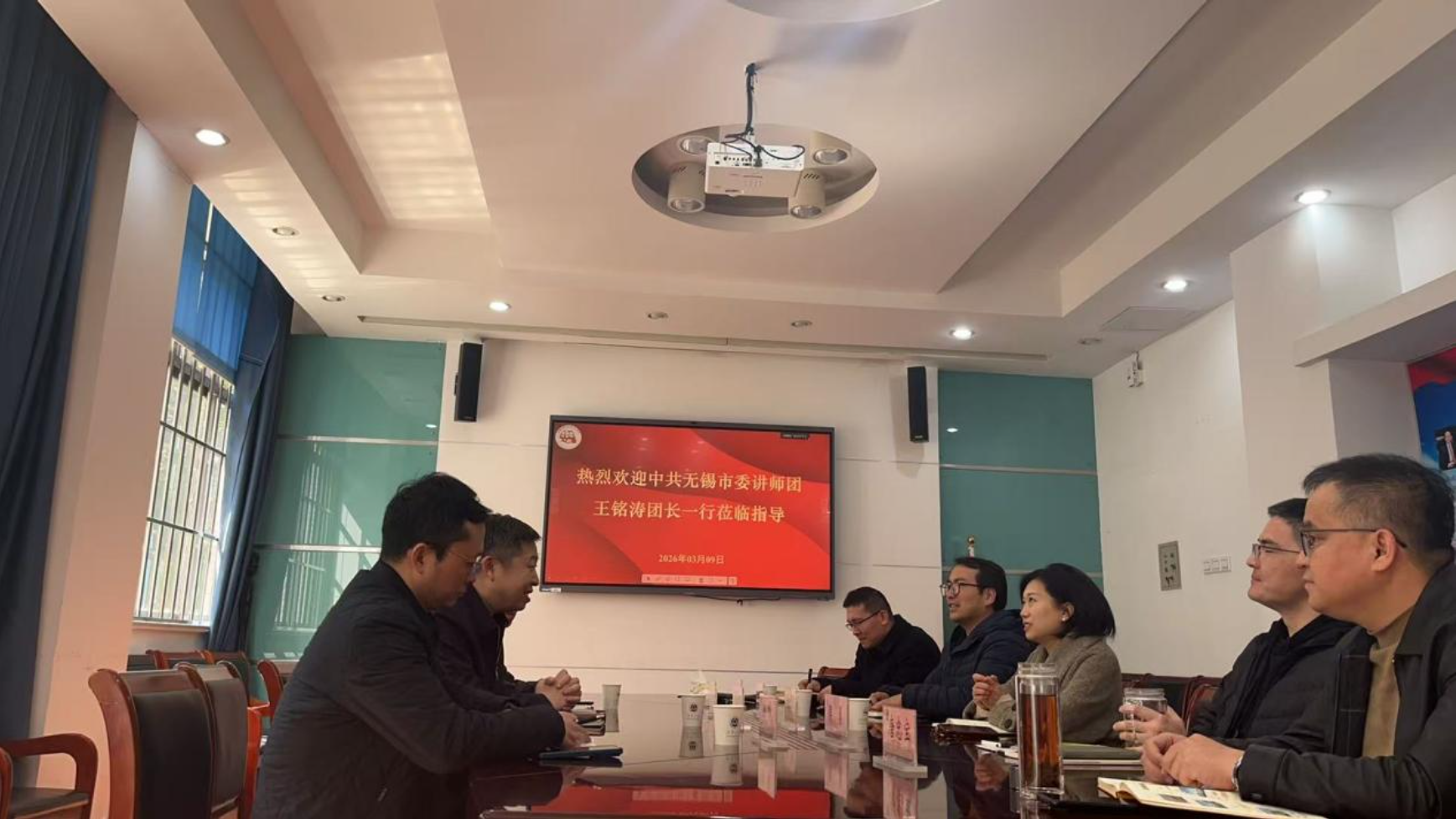 3月9日,无锡市委讲师团团长王铭涛、副团长袁伟、教研室主任徐峰一行莅临江南大学马克思主义学院,围绕理论宣传创新、校地资源融合等议题开展调研交流。座谈会在学院 113 会议室举行,马克思主义学院党委书记杨飏、院长侯勇、党委副书记兼副院长张铁根及教师代表唐忠宝、巩建青、史华伟参会。