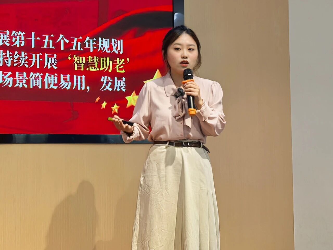 活动现场,10位参赛选手紧扣主题,以青春视角讲红色故事、谈时代担当、话青年作为。罗卿文以“蠡想家 YUAN”为题,破解外卖员急难愁盼的基层治理实践;彭艺琪以红色飘带为引,激励青年走好新时代长征路;潘美琪聚焦“智慧助老,青春同行”,以敬老模范与志愿服务案例,呼吁青年助力老人跨越“数字鸿沟”;马子怡以基层治理为切口,阐释共建共治共享的深刻内涵;陈雨轩从荣氏家族百年实业报国之路出发,号召青年将个人奋斗融入民族复兴。项若涵以商业航天为切入点,解读新质生产力发展内核;张真硕以“建设自己”为主题,提出个人成长规划方法;王芊芊围绕伟大建党精神,号召青年以自我建设之姿赴民族复兴之约;李思甜以“历史的收信人”为题,激励青年以实干书写回信;闫文冉聚焦数字赋能,呼吁青年做数字时代的建设者与主力军。