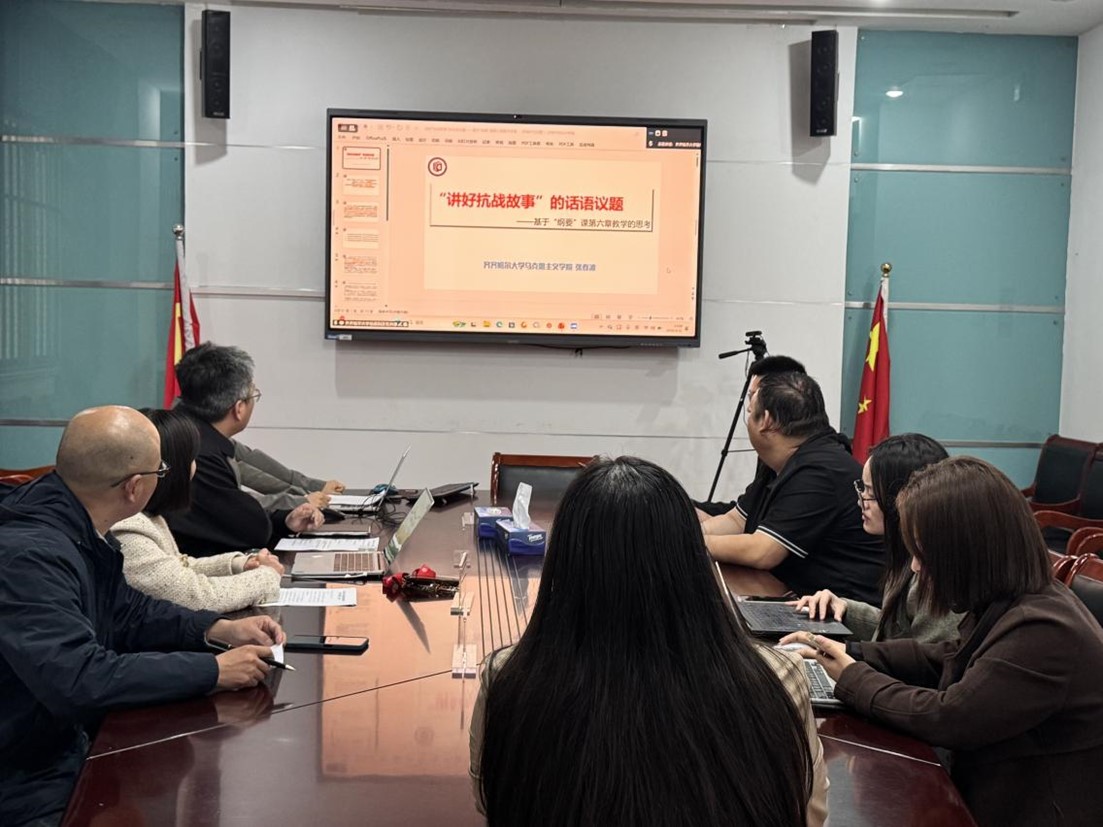 备课会分为两个阶段,第一阶段是教学分享展示,分别由三位教师围绕抗日战争专题进行教学分享。齐齐哈尔大学马克思主义学院副院长张春波老师以“讲好抗战故事”为主题,以齐齐哈尔抗战历史引入,通过翔实的数据和客观深入的分析讲清楚了铭记抗战历史的重要性、全民族团结抗战的过程、中国作为东方主战场的作用、中国共产党在抗战中的中流砥柱作用。陕西科技大学王飞老师聚焦二战错误史观批判与抗战胜利的思政教育价值,系统梳理忽视中国战场作用、西方中心论、原子弹决定论、日本受害者叙事等错误史观,引用国际社会对中国抗战贡献的客观评价,正本清源、以史育人,为抵制历史虚无主义提供教学思路和启发。江南大学毛钦老师以“抗战时期工业内迁与轻工业命运”为题,结合轻工专业特色,运用“启拓教学”理念,以荣氏企业西迁、窑洞工厂等案例,阐释了工业内迁与轻工业艰难发展在抗战中的重要作用以及由此承载的伟大抗战精神。