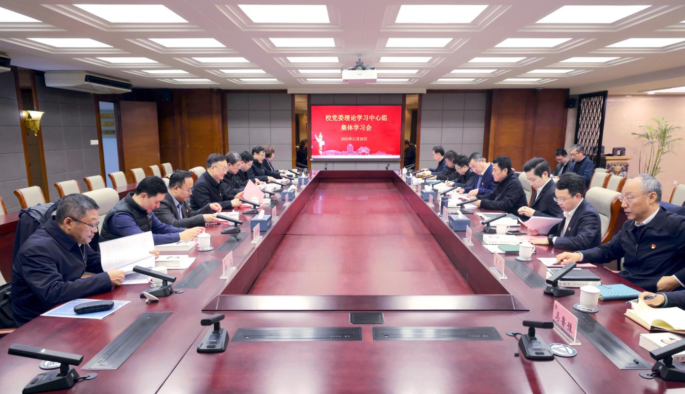 11月25日下午,校党委理论学习中心组在行政楼B305会议室召开集体学习会,聚焦《习近平谈治国理政》第五卷开展专题学习研讨。校党委书记吴正国主持会议,省教育厅副厅长杨树兵、省教育厅高教处处长徐庆、省教育厅高教处副处长毛晓翔、南京医科大学党委宣传部副部长赵春华、省教育厅高教处三级主任科员王伟列席指导。