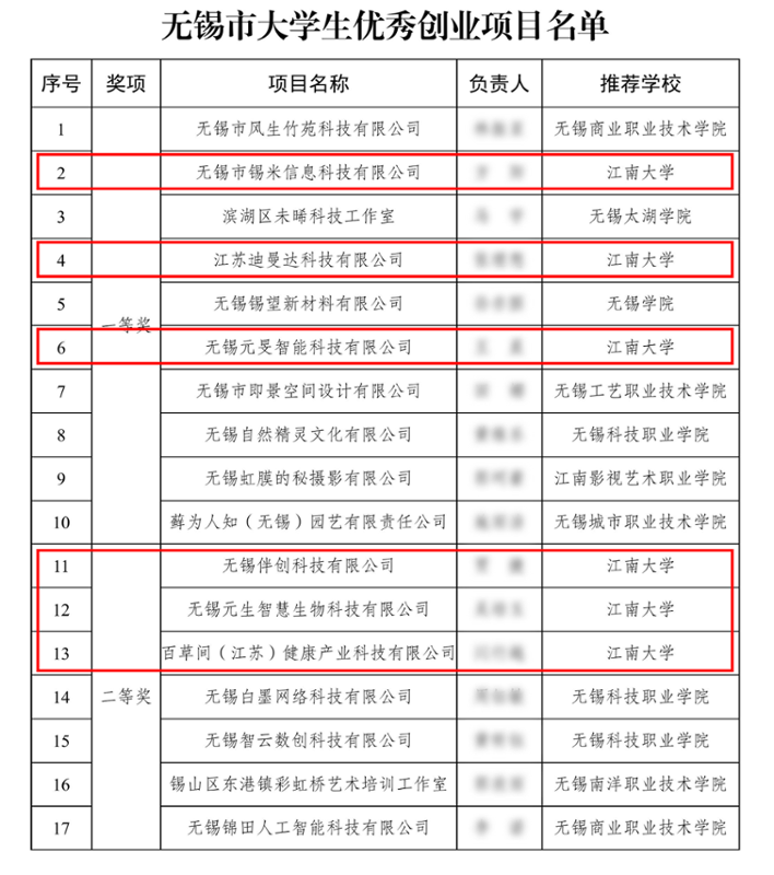 近日,无锡市教育局发布《市教育局关于公布无锡市大学生优秀创业项目的通知》(锡教函〔2025〕214号),江南大学国家大学科技园在此次评选中表现亮眼,共有6个项目成功晋级,其中3个荣获一等奖、3个荣获二等奖,以卓越成绩彰显园区创新创业人才培养成效。