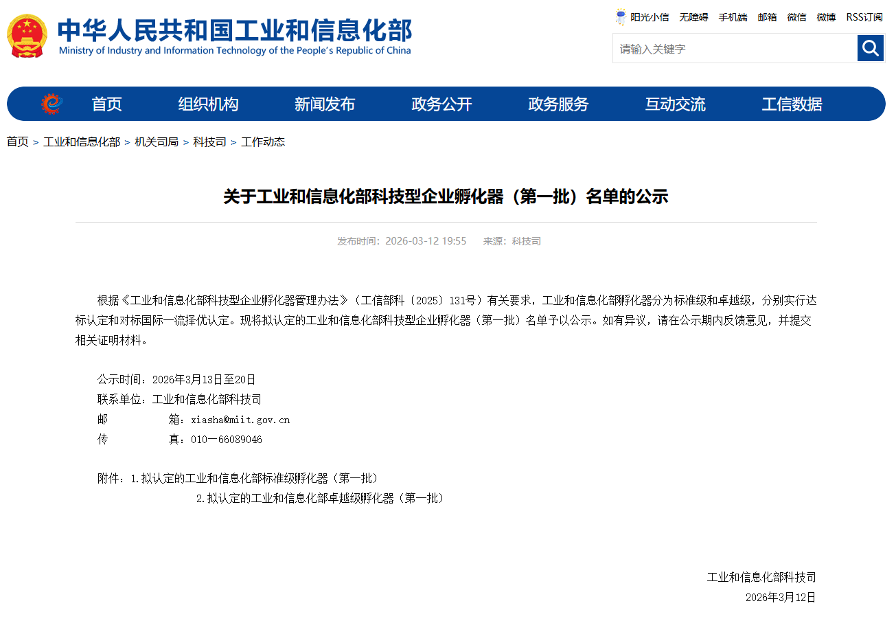 大学科技园入围全国首批工业和信息化部科技型企业孵化器(标准级)