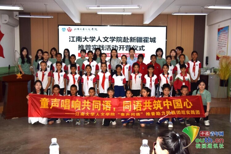 【中青校园10月14日】7月14日至18日,江南大学“童声同语”推普助力民族团结实践团跨越4500公里,前往新疆霍城县第三小学开展推普实践活动。此次活动旨在深化国家通用语言文字推广,铸牢中华民族共同体意识,响应教育部“推普助力乡村振兴”政策。