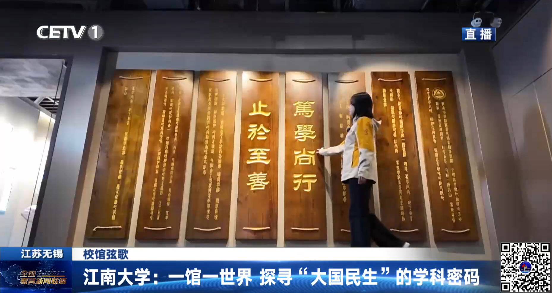 【中国教育电视台1月15日】1月15日,中国教育电视台《全国教育新闻联播》栏目,以《江南大学:一馆一世界 探寻“大国民生”的学科密码》为主题,报道我校文博物馆。