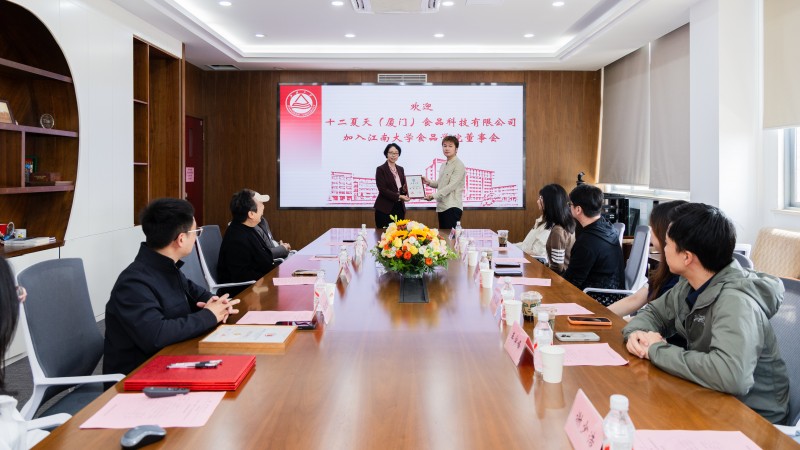 江南大学授予十二夏天“江南大学食品学院董事会”牌匾