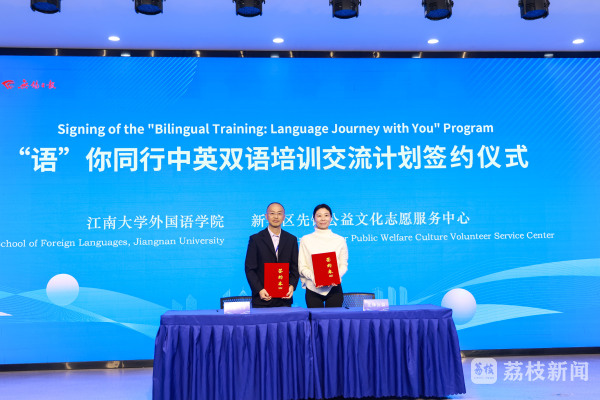 城市最动人的国际传播,往往来自生活在这里的人。启动仪式现场,先锋公益文化志愿服务中心与江南大学外国语学院签署了“‘语’你同行”中英双语培训计划合作协议。根据协议,中外师生将开展双向学习、互助成长,架起文化交流的桥梁。两大校地合作平台也同步揭牌,分别是江南大学实训基地、江南大学融媒体中心·无锡发布工作室联合工作站。这些平台旨在让青年力量成为国际传播的生力军。
