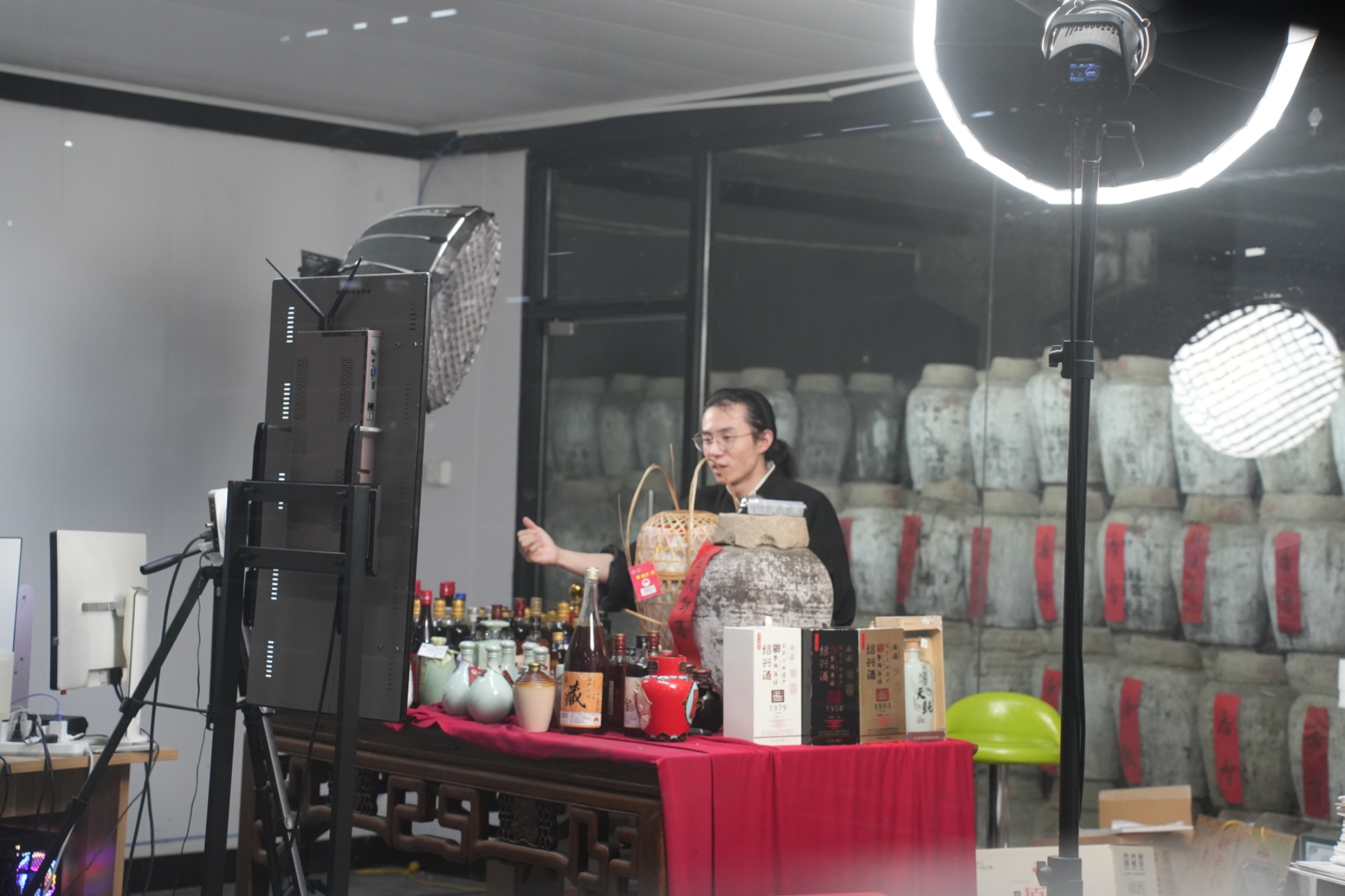 图为中央酒库直播基地中主播正在进行直播带货。中国青年网通讯员 方巧芸 供图