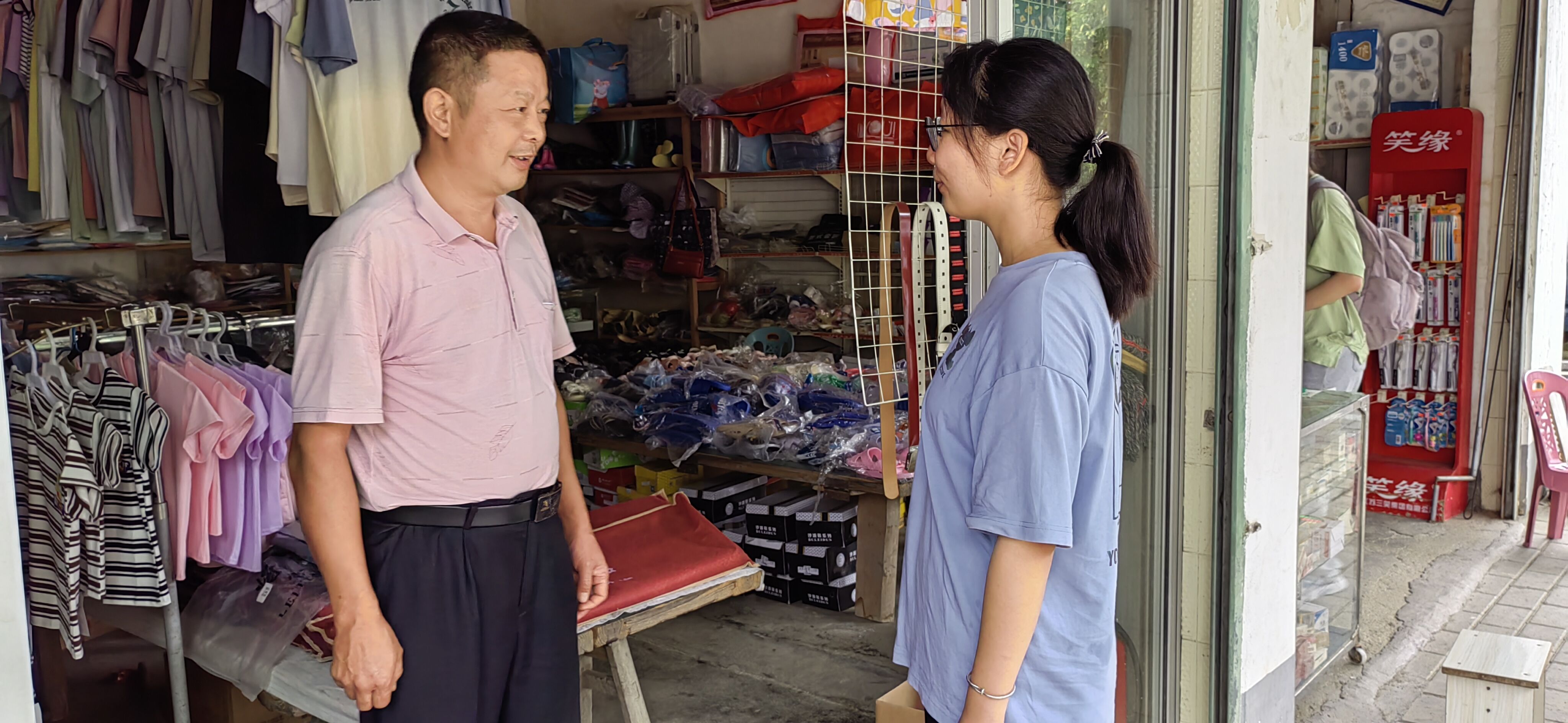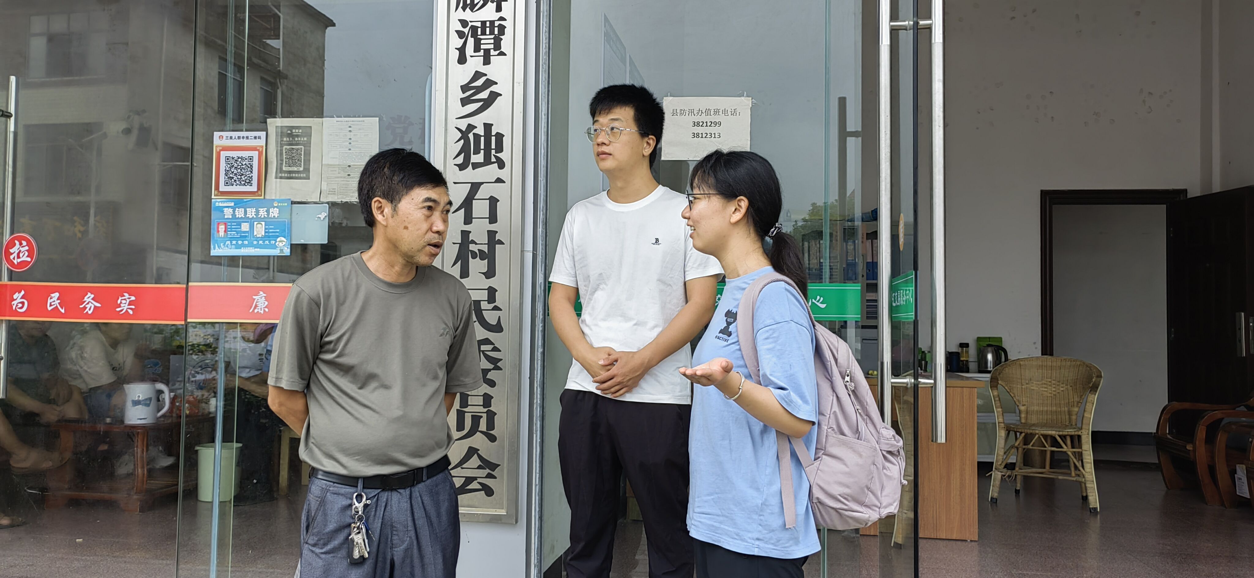 图为团队成员与独石村村委交谈了解当时宣传林业碳汇的困难与方法、学习如何调动林农意愿。 中国青年网通讯员江赛金摄
