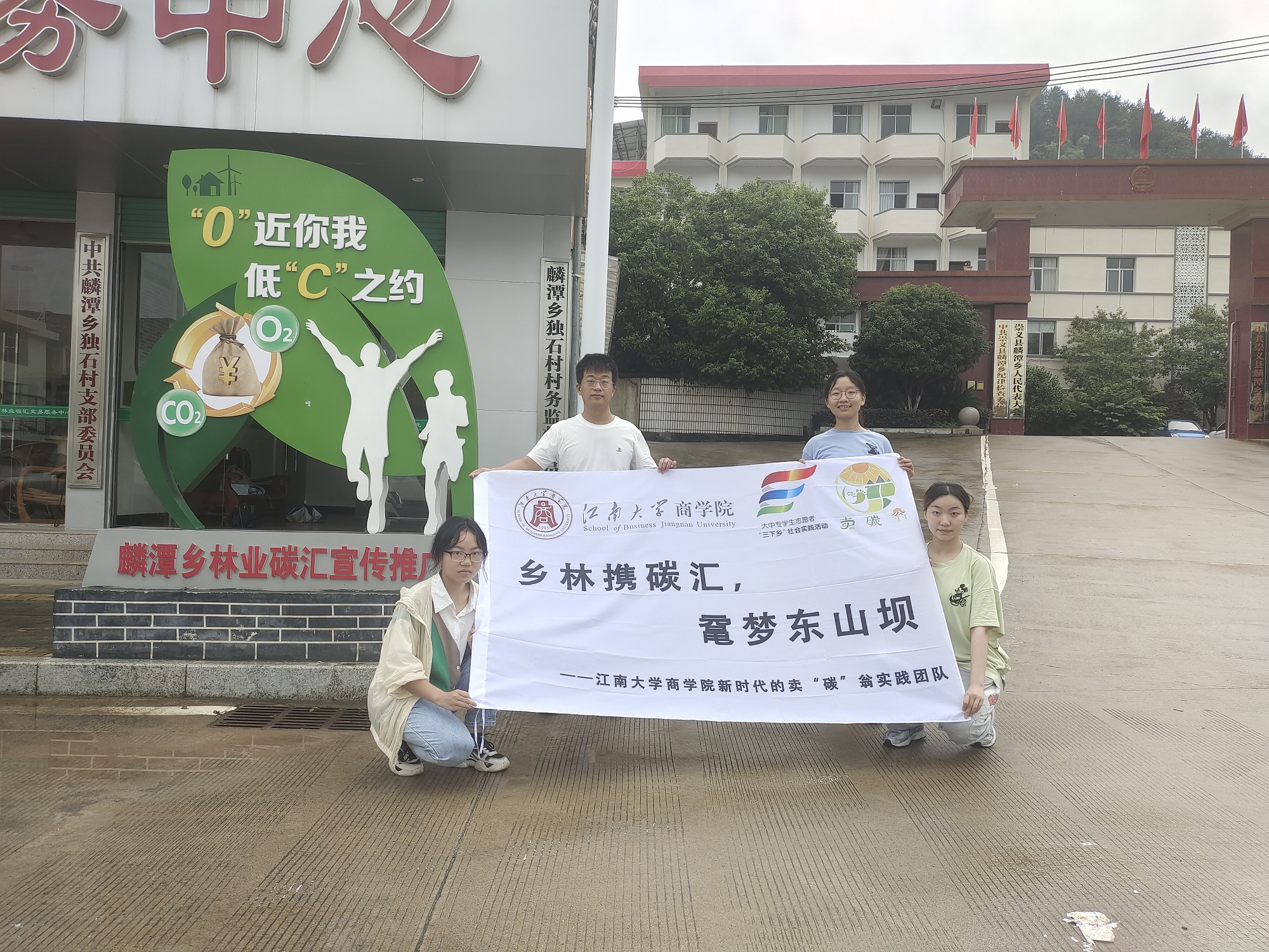 图为团队在麟潭乡政府与碳汇宣传教室门前的合影。中国青年网通讯员 杨紫瑶 摄