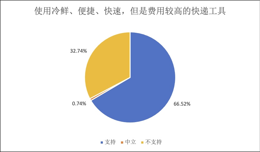 有66.52%的消费者选择希望使用冷鲜、便捷、快速,但是费用较高的快递工具。有的花卉用于送礼、节日庆典装饰等用途,对于花卉的保鲜、运输速度有着一定的要求。