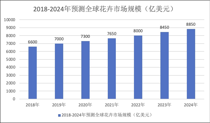 图1.2:2018-2024年预测全球花卉市场规模(亿美元)