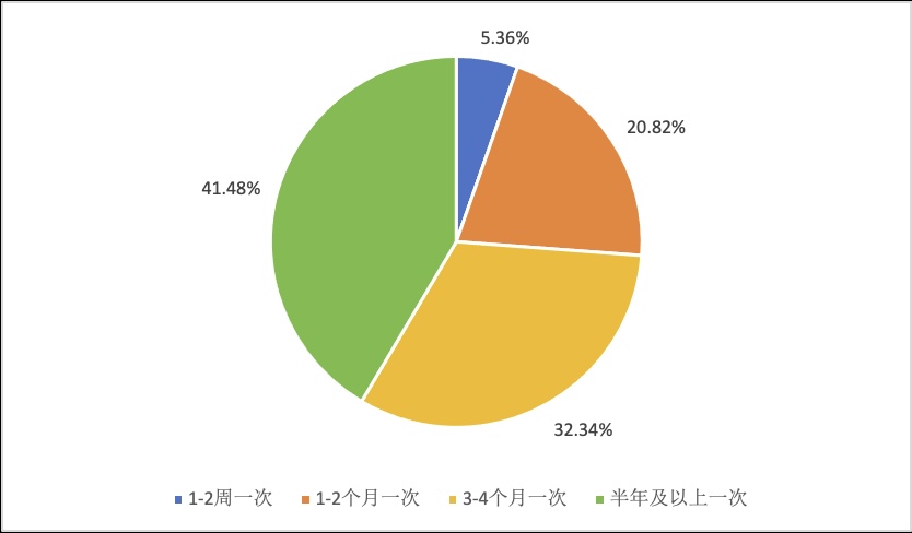 部分室内盆栽植物,花园装饰植物由于生命周期和生长时间较长通常不需要经常更换,购买频率较低,而鲜花大多只在特殊节日,特殊活动时购买量较大,需求频率也比较低。据数据统计只有5.36%的被访者1-2周购买一次花卉,其他购买周期都相对来说较长。