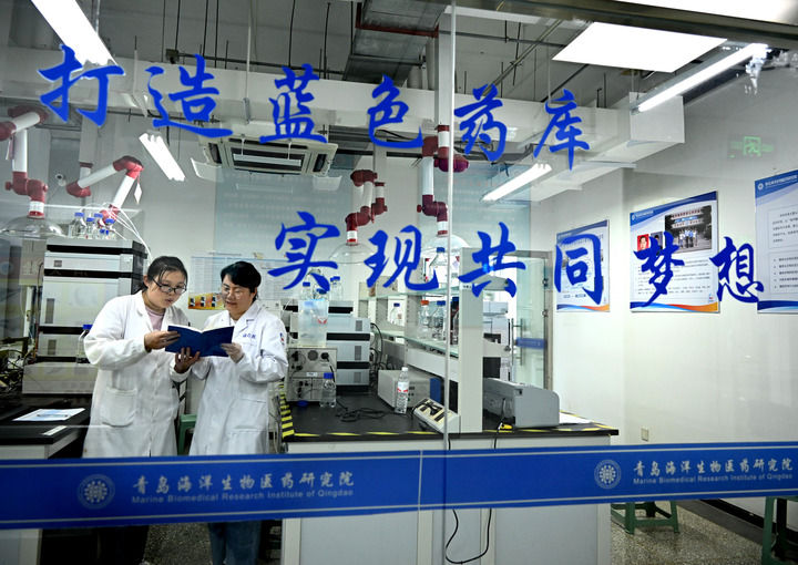 8月27日,研究人员在青岛海洋生物医药研究院实验室进行相关海洋药物的研究 李紫恒 摄