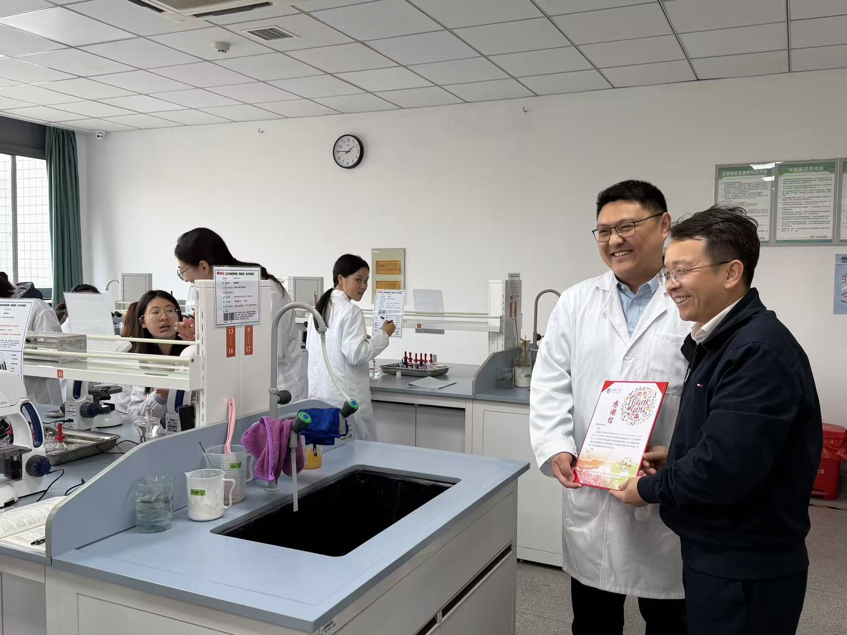 校领导在生工楼实验室为张显颁发感谢信